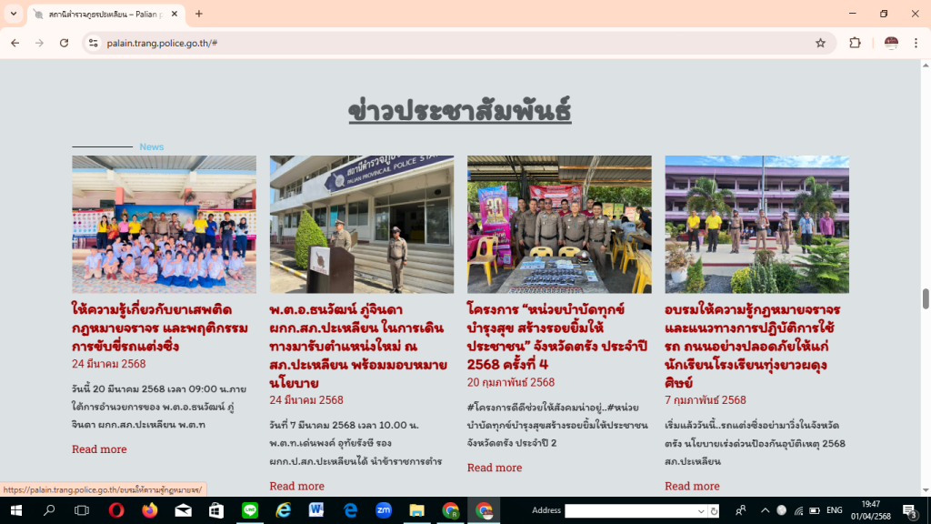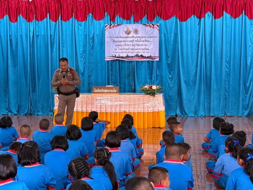 วันที่ 6 พฤศจิกายน 2567 เวลา 13.00 น. ภายใต้การอำนวยการของ พ.ต.อ.เจริญพร สอนสังข์ ผกก.สภ.ปะเหลียน มอบหมายให้ พ.ต.ท. เด่นพงค์ อุทัยรังษี รอง ผกก.ป.สภ.ปะเหลียน พ.ต.ท.โชคดี ยูเด็น สวป. สภ.ปะเหลียน พร้อม ชป.20 ,ชุดเจ้าหน้าที่จราจร,สายตรวจตำบลทุ่งยาว และเจ้าหน้าที่ที่เกี่ยวข้อง ร่วมเป็นวิทยากรบรรยายในกิจกรรมซักซ้อมแผนเผชิญเหตุบุคคลคลุ้มคลั่งป้องกันการก่อเหตุร้ายในโรงเรียนและการให้ความรู้วินัยจราจร ณ โรงเรียนบ้านทุ่งมะขามป้อม ต.ทุ่งยาว อ.ปะเหลียน จ.ตรัง