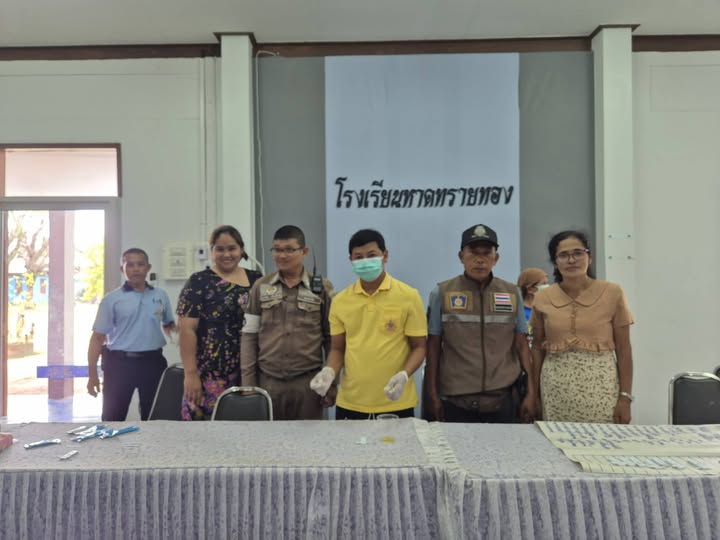 สวป.สภ.ปะเหลียน สั่งการให้ ด.ต.วริทธิ์นันท์ เสนอินทร์ สายตรวจเกาะสุกร ด.ต.รุจนากร เตียวปิยกุล ผบ.หมู่ (จร.)สภ.ปะเหลียน ตรวจปัสสาวะหาสารเสพติด ข้าราชการ ลูกจ้างและบุคลากรโรงเรียนหาดทรายทอง ต.เกาะสุกร อ.ปะเหลียน จ.ตรัง เขตพื้นที่การศึกษาประถมศึกษาตรัง เขต1