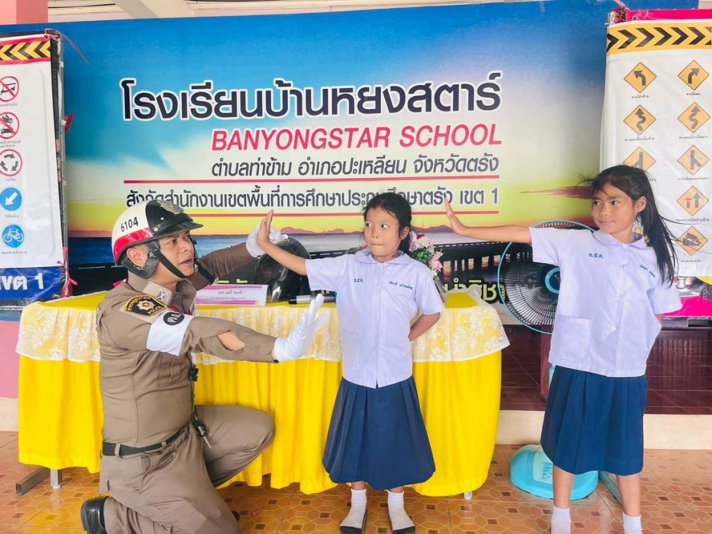 วันที่ 20 มีนาคม 2568 เวลา 09:00 น. ภายใต้การอำนวยการของ พ.ต.อ.ธนวัฒน์ ภู่จินดา ผกก.สภ.ปะเหลียน พ.ต.ท.เด่นพงค์ อุทัยรังษี รอง ผกก.ป.สภ.ปะเหลียน มอบหมายให้ ร.ต.อ.สุเทพ คงรอด รอง สว.(ป.)สภ.ปะเหลียน หน.สายตรวจตำบลท่าข้าม พร้อมด้วย ร.ต.อ.อุทรพงศาปาน รอง สว.(สส.)สภ.ปะเหลียน และ ด.ต.นที คงดี ผบ.หมู่(ป.)สภ.ปะเหลียน ร่วมเป็นวิทยากร ให้ความรู้เกี่ยวกับยาเสพติด กฎหมายจราจร และพฤติกรรมการขับขี่รถแต่งซิ่ง เพื่อสร้างความตระหนักรู้เกี่ยวกับความปลอดภัยบนท้องถนน ตามนโยบาย ผบก.ภจว.ตรัง “รถดัดแปลง แต่งซิ่ง อย่ามาวิ่ง ในจังหวัดตรัง ณ โรงเรียนบ้านหยงสตาร์ ต.ท่าข้าม อ.ปะเหลียน จ.ตรัง