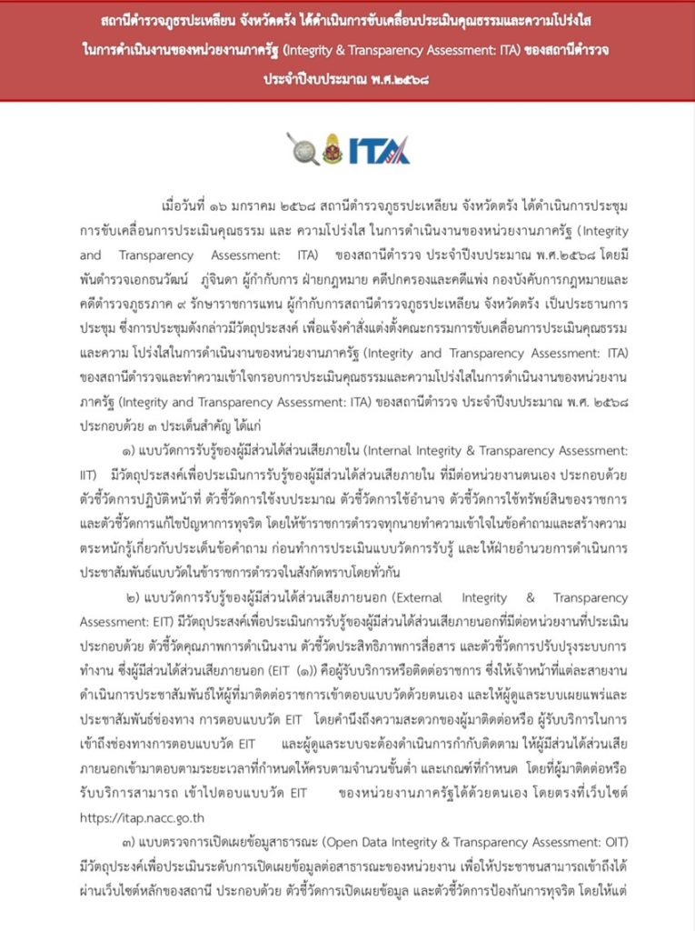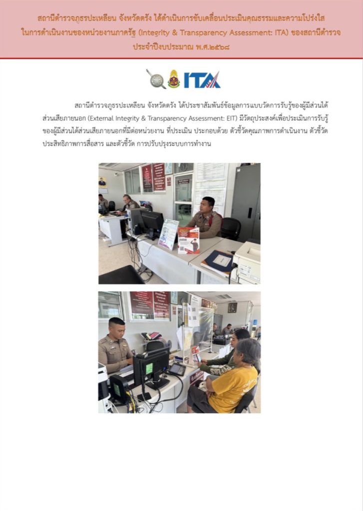 โครงการชุมชนยั่งยืนประจำปี 2568 การซักซ้อมแผนเผชิญเหตุการปฏิบัติหน้าที่ของเจ้าหน้าที่ตำรวจ ในด้านมืออาชีพ การรายเหตุให้ผู้บังคับบัญชาทราบตามลำดับชั้น แนวทางปฏิบัติ พ.ร.บ.ป้องกันการทรมาน สอบถามปัญหาอุปสรรคในการปฏิบัติหน้าที่ ณ ห้องศปก.สภ.ปะเหลียน