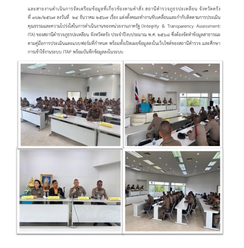 วันที่ 14 พ.ย.2567เวลา 10.00 น. พ.ต.อ.เจริญพร สอนสังข์ ผกก.สภ.ปะเหลียน พร้อมข้าราชการในสังกัด ประชุมประจำเดือนชี้แจง