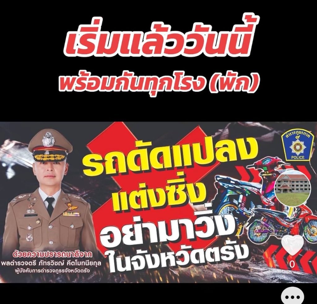 เริ่มแล้ววันนี้..รถแต่งซิ่งอย่ามาวิ่งในจังหวัดตรัง นโยบายเร่งด่วนป้องกันอุบัติเหตุ 2568